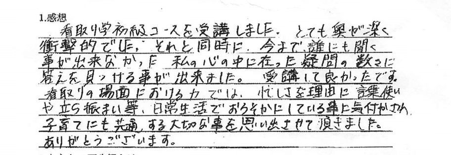 受講してくださった方々の感想をご本人の許可を得て掲載させて頂いています。